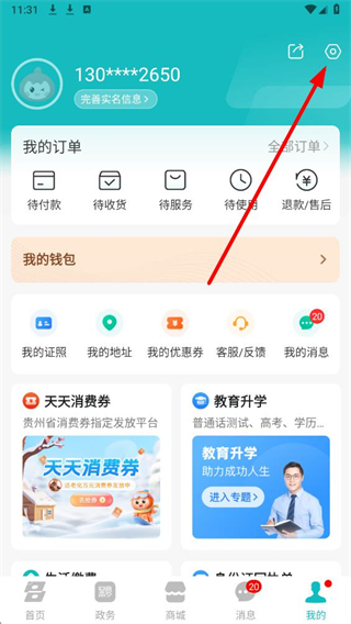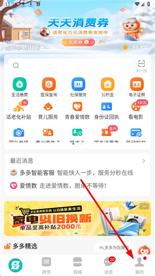 1、打開(kāi)多彩寶App,點(diǎn)擊底部導(dǎo)航欄中的政務(wù)選項(xiàng)進(jìn)入政務(wù)頁(yè)面。
