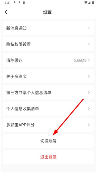 3、在設(shè)置頁(yè)面中,找到切換賬號(hào)選項(xiàng)并點(diǎn)擊,進(jìn)入切換賬號(hào)頁(yè)面。