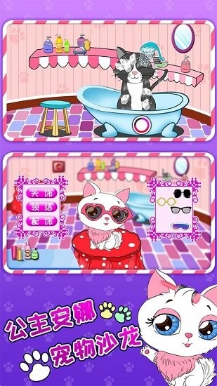 2、可愛的寵物狗和寵物貓們在等你,希望你能好好陪它們玩耍,給寵物們洗洗澡換裝。