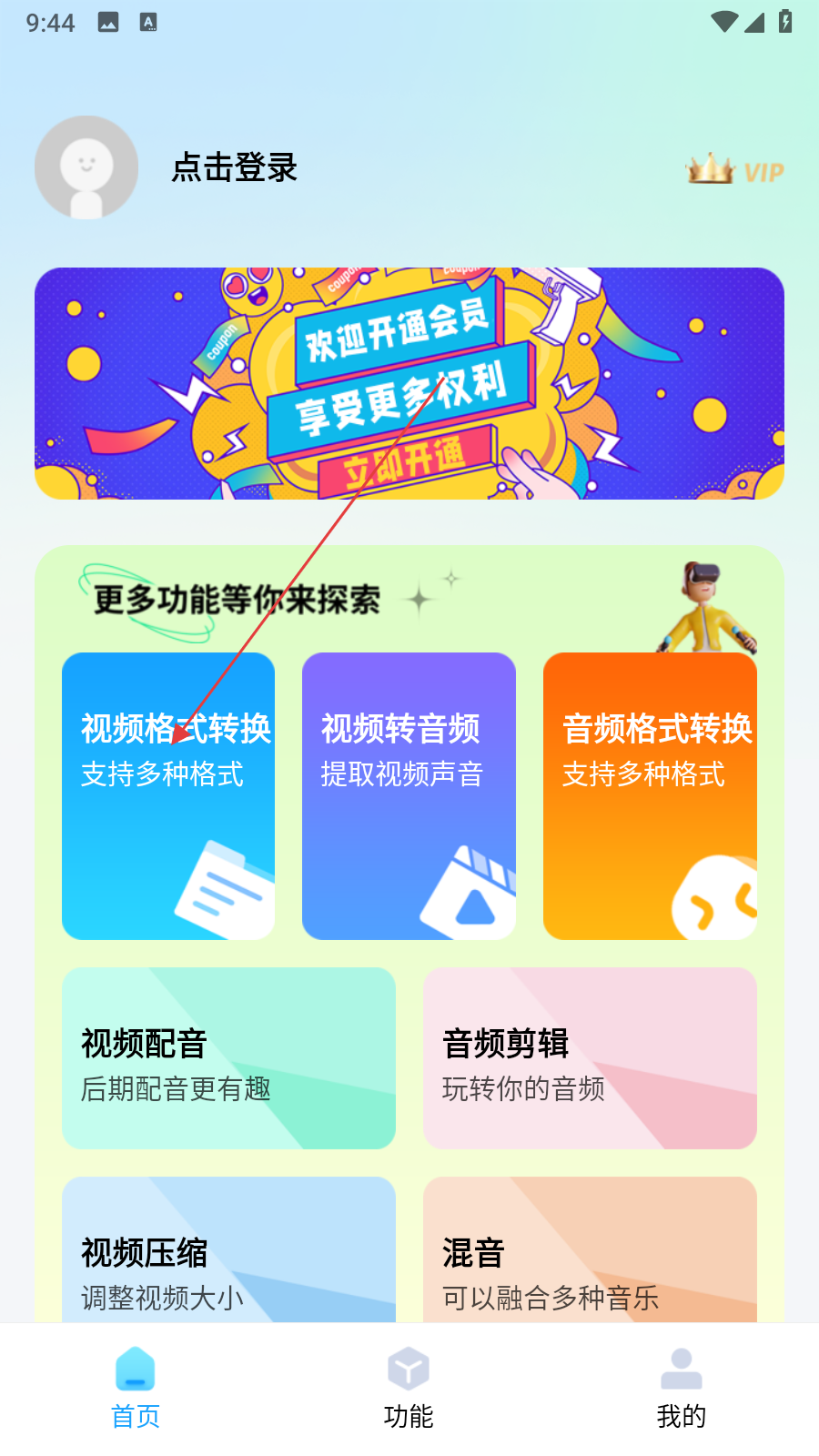 1、打開格式轉(zhuǎn)換器應(yīng)用,在首頁找到視頻格式轉(zhuǎn)換功能模塊并點擊。