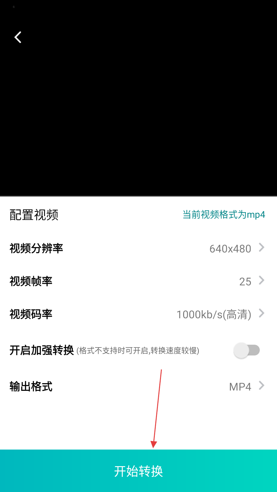 3、在視頻配置頁面,可根據(jù)需求設(shè)置視頻參數(shù),點擊頁面底部的開始轉(zhuǎn)換按鈕。