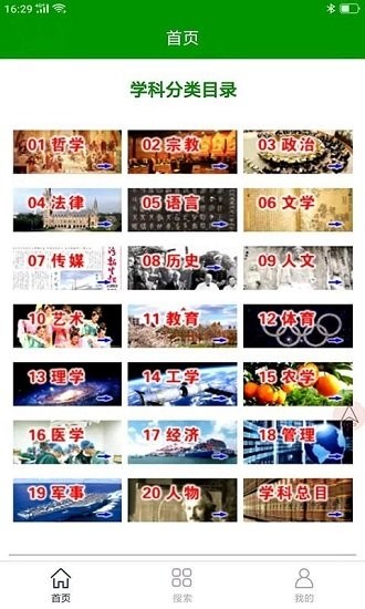 中文百科App學科目錄系統(tǒng),主要是為用戶使用本App提供具有科學體系的系統(tǒng)的條目查詢指引。