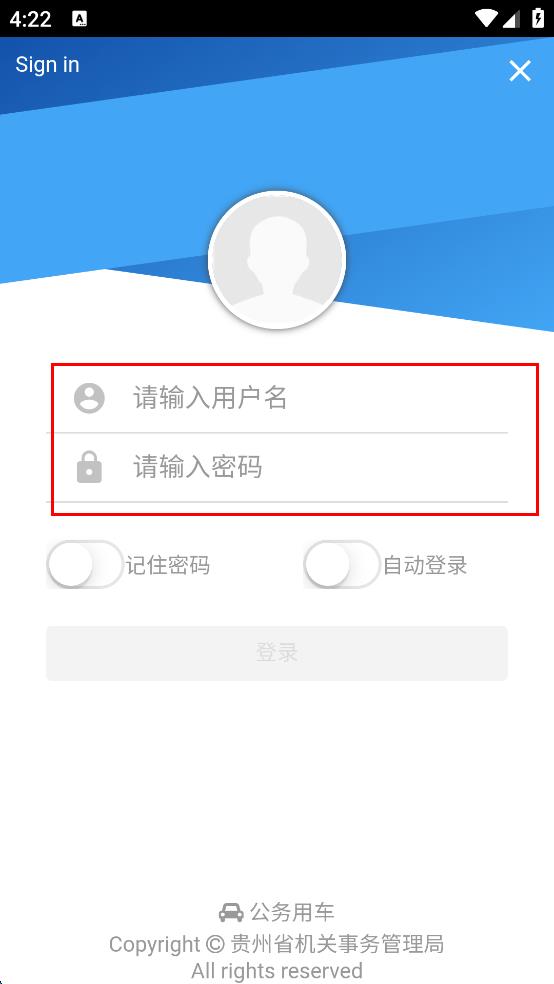 4、用戶(hù)名和密碼都輸入完畢后,點(diǎn)擊“登錄”按鈕,即可完成公務(wù)用車(chē)APP的登錄操作。