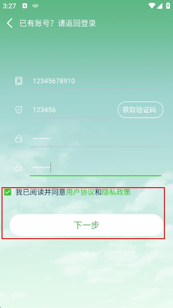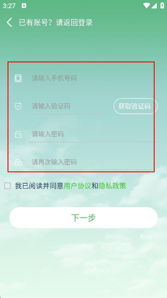 4、勾選我已閱讀并同意用戶(hù)協(xié)議和隱私政策,點(diǎn)擊下一步完成注冊(cè)。