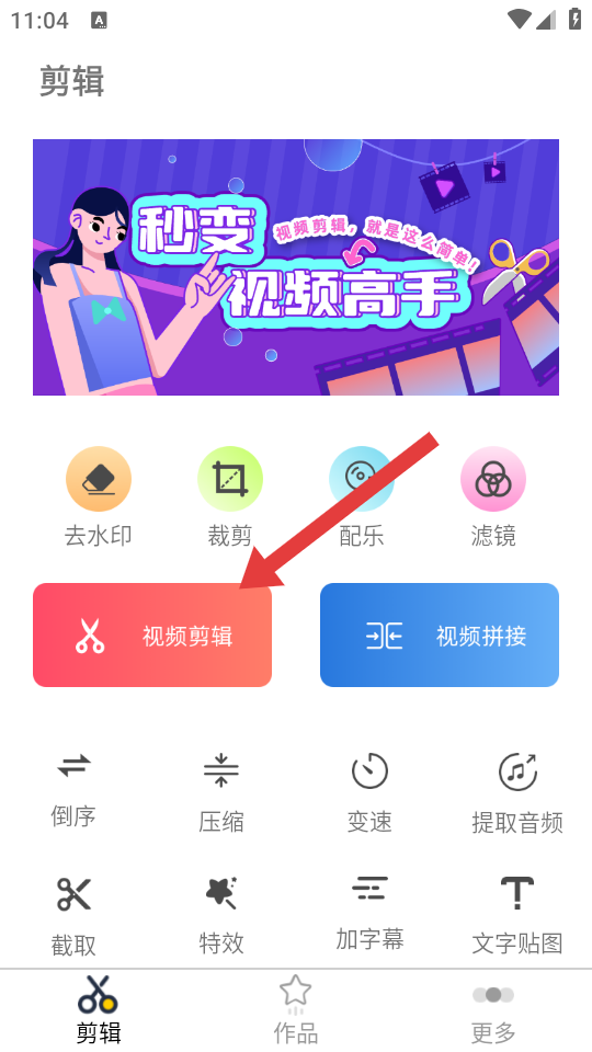 1、打開(kāi)秒剪APP,需要點(diǎn)擊視頻剪輯,然后進(jìn)入視頻選擇的界面。