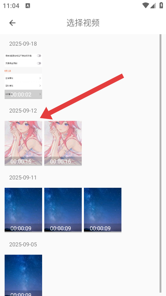 2、在視頻選擇界面選取目標(biāo)視頻素材,進(jìn)入視頻預(yù)覽的界面。