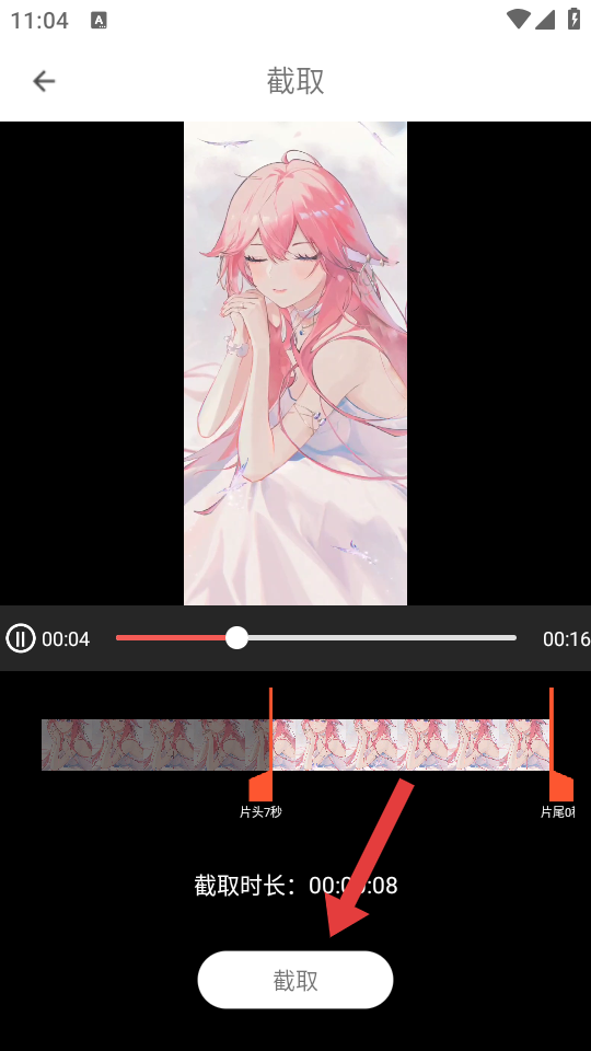 4、在截取編輯界面,調(diào)整截取時(shí)長(zhǎng)后點(diǎn)擊截取,即可完成剪輯。