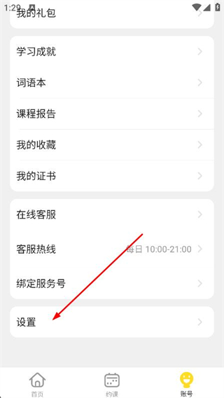 2、在賬號頁面中,找到并點擊下方的設置選項。