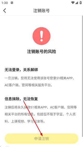 4、點擊申請注銷按鈕,按照提示完成賬號注銷。