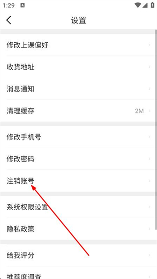 3、進入設置頁面后,點擊下方的注銷賬號選項。