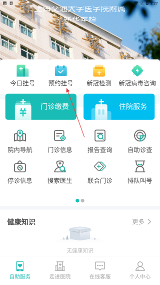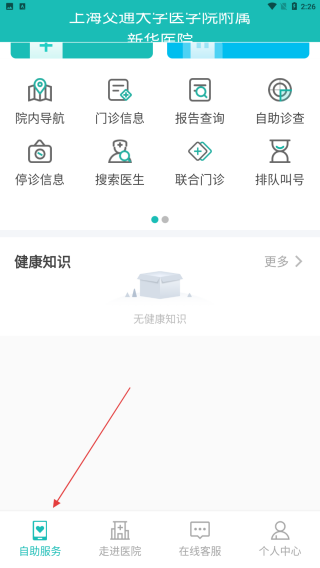 1、打開上海新華醫(yī)院APP,點擊底部導(dǎo)航欄的自助服務(wù)選項,進(jìn)入自助服務(wù)頁面,在此頁面可看到多種與就醫(yī)相關(guān)的便捷服務(wù)功能。