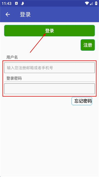 3、進(jìn)入登錄頁(yè)面,輸入用戶名注冊(cè)郵箱或手機(jī)號(hào)和登錄密碼。