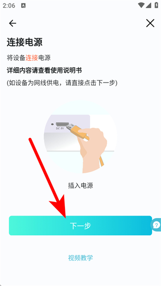 3.按照提示將設(shè)備連接電源,完成后點擊下一步按鈕。