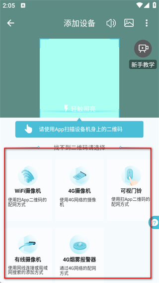 2.進入添加設(shè)備界面后,選擇要添加的設(shè)備類型,如WiFi攝像機、4G攝像機、可視門鈴等。
