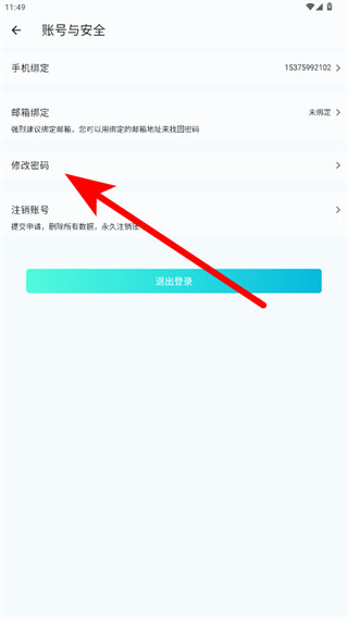 3、在賬號安全設(shè)置頁面中點擊修改密碼,進入密碼修改頁面。