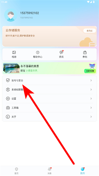 2、在個人頁面中點擊賬號與安全,進入賬號安全設(shè)置頁面。