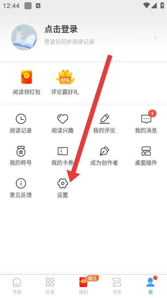 1、在瘋讀小說書城界面,點擊底部導(dǎo)航欄我選項,進(jìn)入個人的頁面。