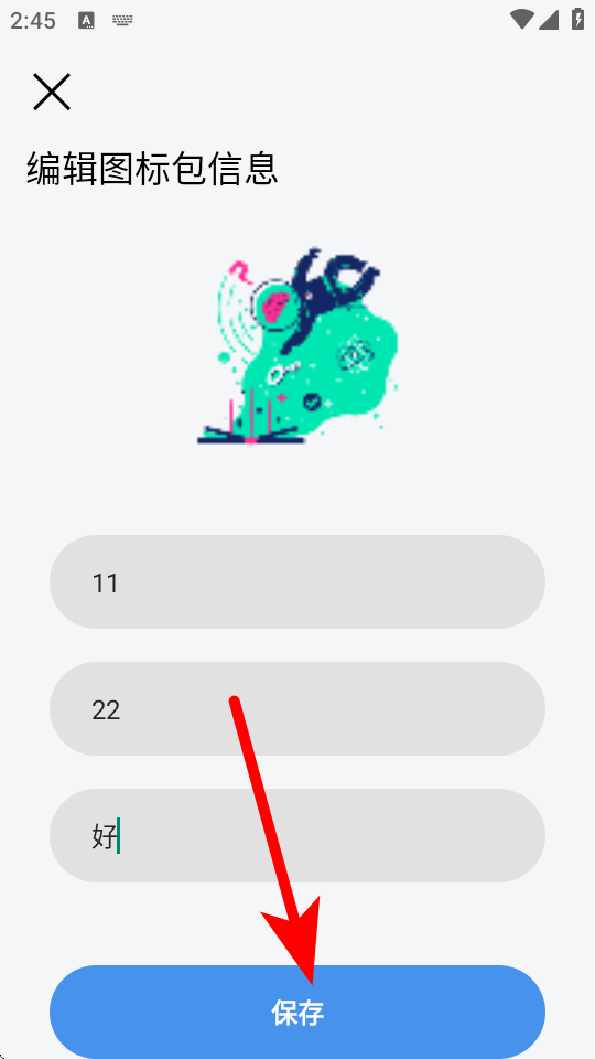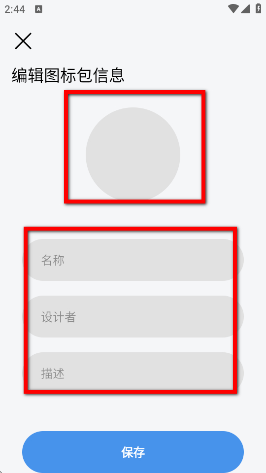 2、在編輯圖標包信息界面,設置圖標包的圖片、名稱、設計者和描述等信息。