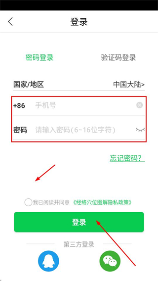 3、在登錄頁(yè)面,輸入手機(jī)號(hào)和密碼,勾選隱私政策,點(diǎn)擊登錄。