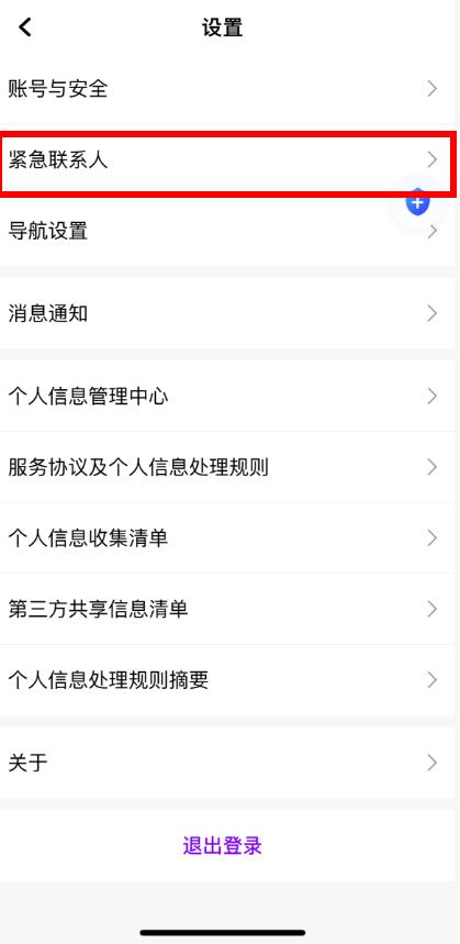 2、在設置頁面中點擊緊急聯(lián)系人選項,進入添加緊急聯(lián)系人界面。