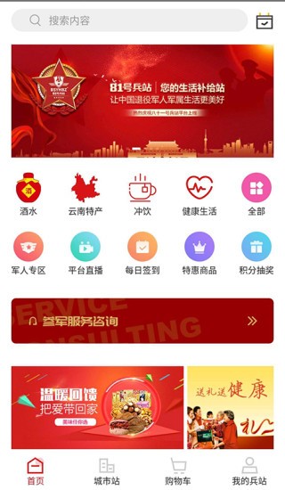 81號兵站app是非常好用的一款全方位的手機購物軟件,在這里用戶們能夠找到超多的種類的商品進行購買,酒水、特產(chǎn)、沖飲、生活等等,還能夠找到軍人專區(qū)、直播等等,讓用戶們能夠根據(jù)自己的需求進行尋找和購買。還能夠在這里咨詢參軍和法律相關的各種問題,方便快捷。