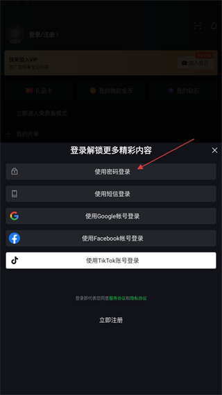 3、在彈出的登錄界面中,點(diǎn)擊使用密碼登錄的選項(xiàng)。