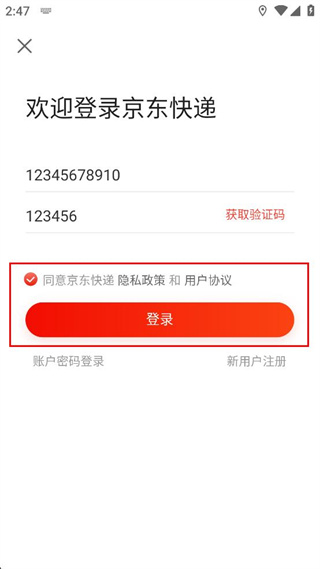 4、勾選同意相關(guān)隱私政策和用戶協(xié)議的選項(xiàng),點(diǎn)擊界面中的登錄按鈕完成登錄操作。