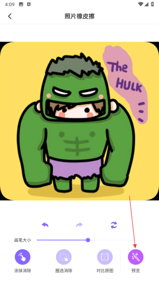3、在編輯界面,根據(jù)需求選擇涂抹消除或圈選消除方式,調(diào)整畫筆大小后,對圖片中需擦除的物體進(jìn)行操作。