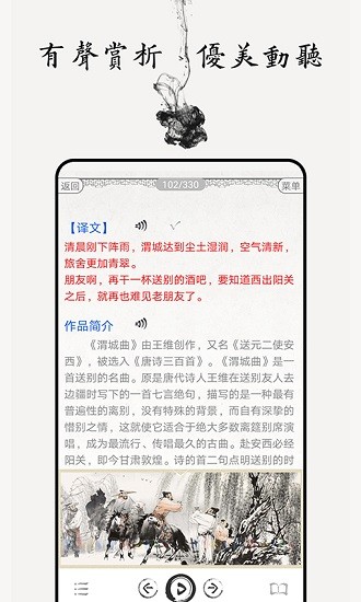 3、一鍵播放,點擊播放圖標即可播放相關的古詩內容,都是純正的發(fā)音。