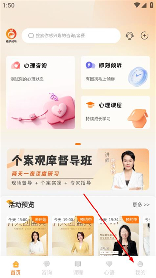 2、觀看直播的心理課程,能進入直播課程專區(qū)中查看并選擇播放直播課程。