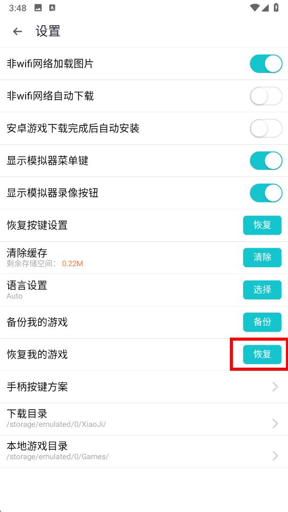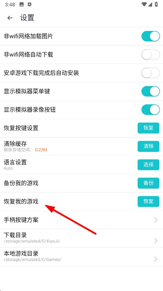 3、在設置界面里,向下滑動頁面找到恢復我的游戲的選項。