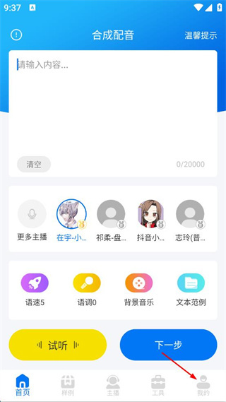 專業(yè)配音一鍵合成,快速將文本轉(zhuǎn)換為流暢自然清晰的語音,提供男女聲、特色主播,英文主播,方言主播等,支持調(diào)節(jié)音量,語速和背景音樂