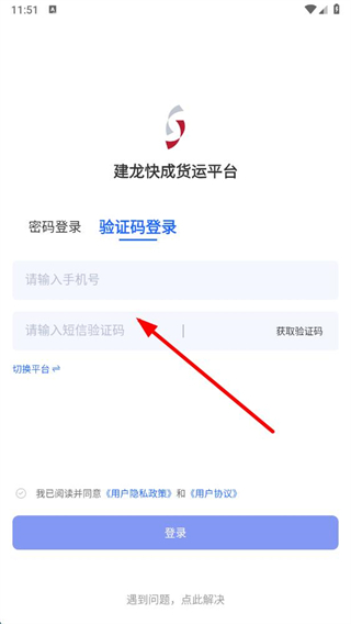 4、在驗證碼登錄界面,輸入手機號,點擊獲取驗證碼,收到后輸入短信驗證碼,勾選同意協(xié)議后點擊登錄。