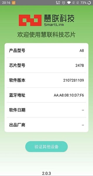 檢測慧聯(lián)A8,需要安裝 2.0.3 版本APP才可以檢測