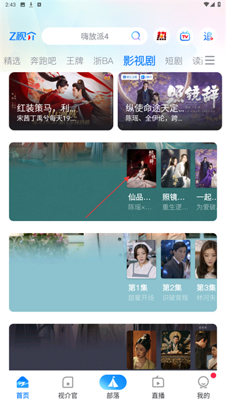 1、打開中國(guó)藍(lán)tv的APP,進(jìn)入首頁點(diǎn)擊直播的標(biāo)簽。