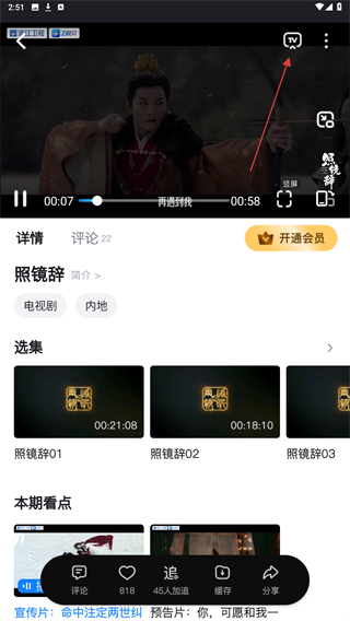 3、進(jìn)入播放的頁面內(nèi),點(diǎn)擊右上方TV的圖標(biāo)。