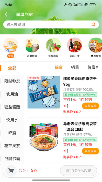 3.品類齊全,新鮮蔬菜、水果、肉類、禽蛋、米粉、糧油、水產(chǎn)海鮮、方便快餐,以及一日三餐所需食材。