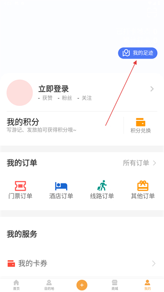 2、在我的界面內(nèi),點擊右上角我的足跡的功能按鈕。