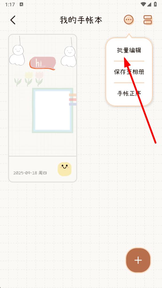 2、進(jìn)入我的手帳本頁面后,點(diǎn)擊右上角的更多圖標(biāo)。
