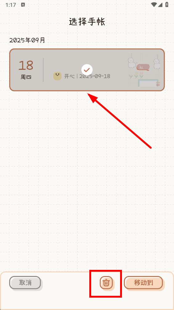 4、在選擇手帳界面,勾選要?jiǎng)h除的手帳內(nèi)容,接著點(diǎn)擊底部的刪除圖標(biāo)。