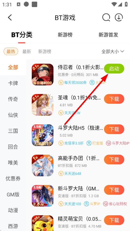 3、游戲下載完成后,點擊啟動按鈕,即可開始免費體驗該BT游戲,部分游戲可能還有每日福利可以領(lǐng)取。