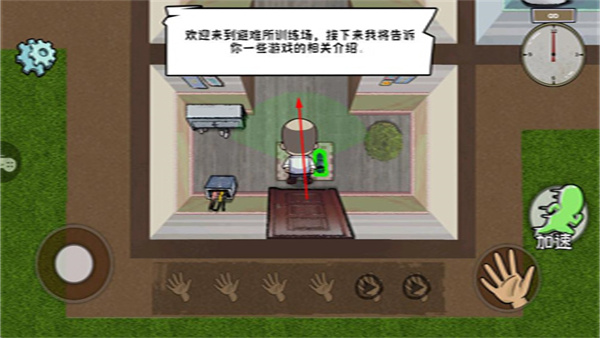 1、進(jìn)入避難所訓(xùn)練場游戲界面,跟隨提示操控角色移動,了解游戲基礎(chǔ)介紹。