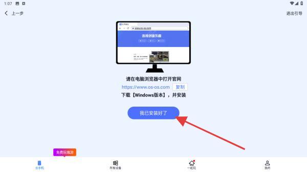 2、確認(rèn)電腦端狀態(tài),APP會(huì)提示請(qǐng)?jiān)陔娔X瀏覽器中打開官網(wǎng)下載Windows版本并安裝,若已安裝,點(diǎn)擊我已安裝好了。