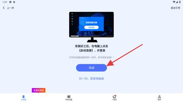 1、打開無界趣連APP,找到并點(diǎn)擊界面中的連接新電腦按鈕。