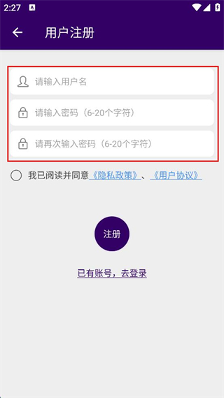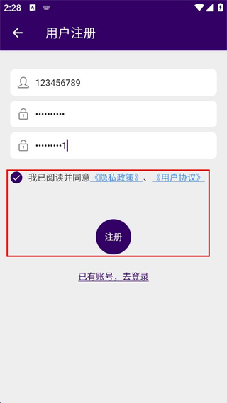 4、勾選我已閱讀并同意隱私政策,用戶協(xié)議,點擊“注冊”按鈕完成注冊。