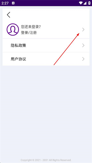 2、在設(shè)置相關(guān)頁面,點擊“登錄/注冊”進入用戶注冊頁面。