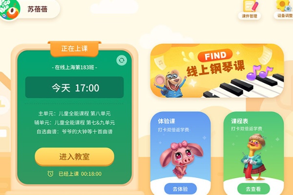 FIND線上課app是非常實用的少兒鋼琴教育平臺,用戶下載app之后就可以在線開啟學習模式,豐富的進階式課程能夠滿足不同水平學生的學習需求,超多名師在線教學指導,幫助孩子打牢基礎,專業(yè)的老師為你帶來直播教學,練習中的所有錯誤都能夠幫助你指正,非常多的曲譜課程,鍛煉鋼琴基本功,讓你打好基礎。歡迎感興趣的用戶下載FIND鋼琴線上課體驗吧。