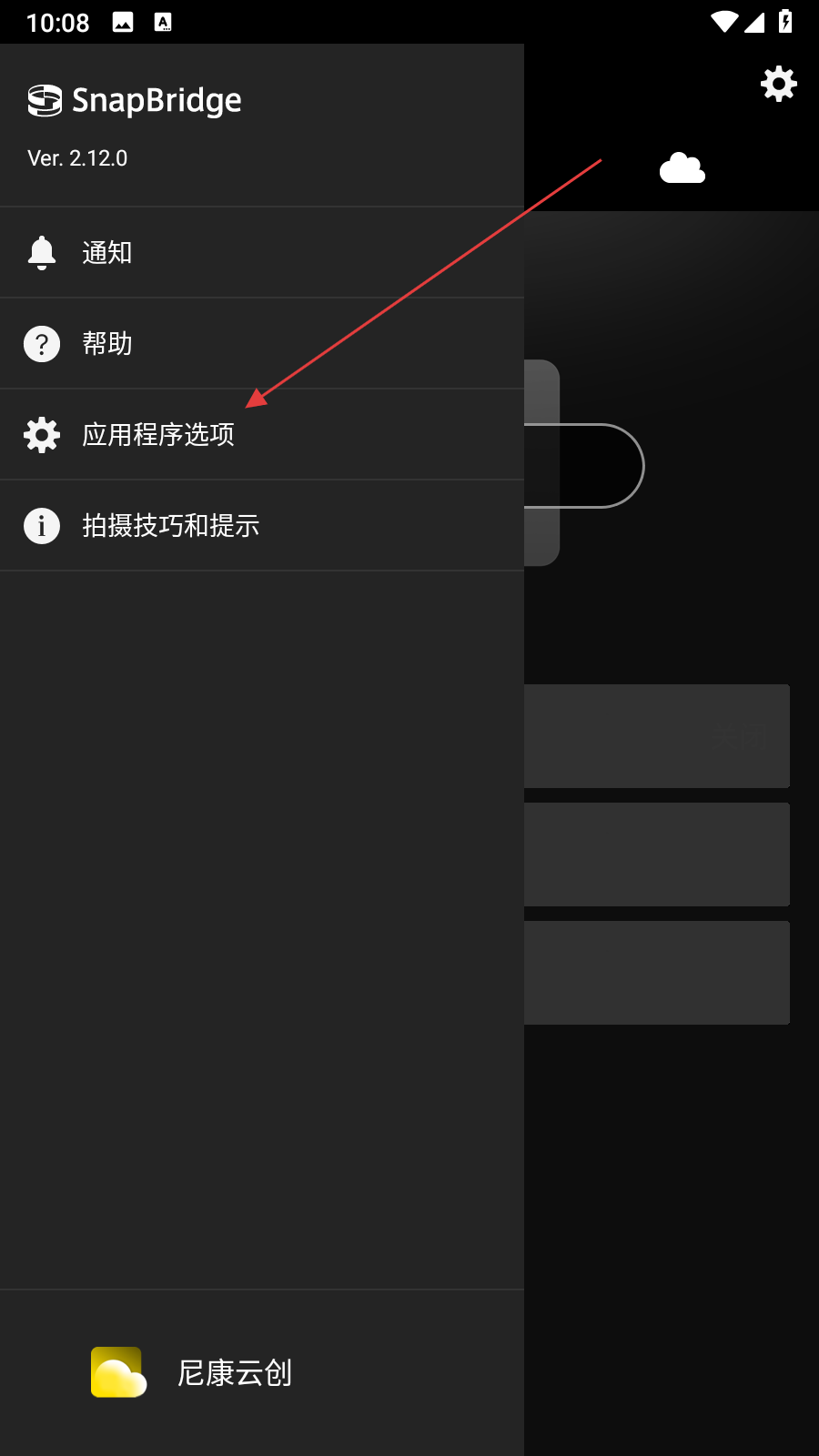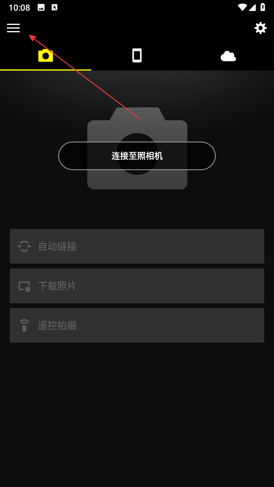 1、在SnapBridge主界面,點(diǎn)擊左上角由三條橫線組成的菜單圖標(biāo),展開側(cè)邊欄。