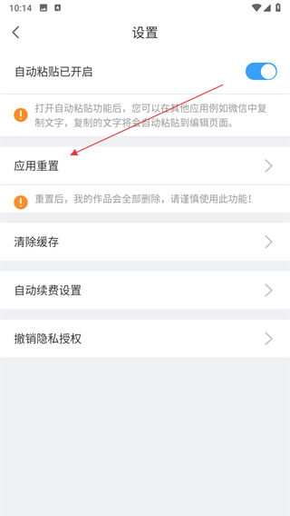 3、在設(shè)置界面中,點(diǎn)擊應(yīng)用重置選項(xiàng),會(huì)彈出提示框。