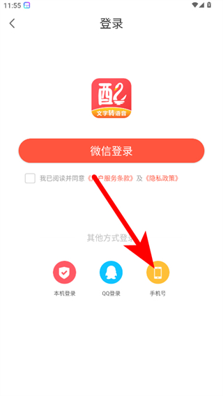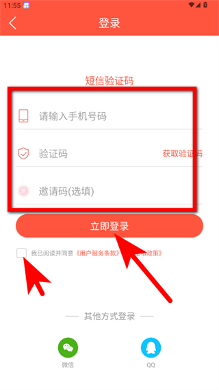 3、在登錄界面,點(diǎn)擊手機(jī)號(hào)選項(xiàng),進(jìn)入短信驗(yàn)證碼登錄界面。